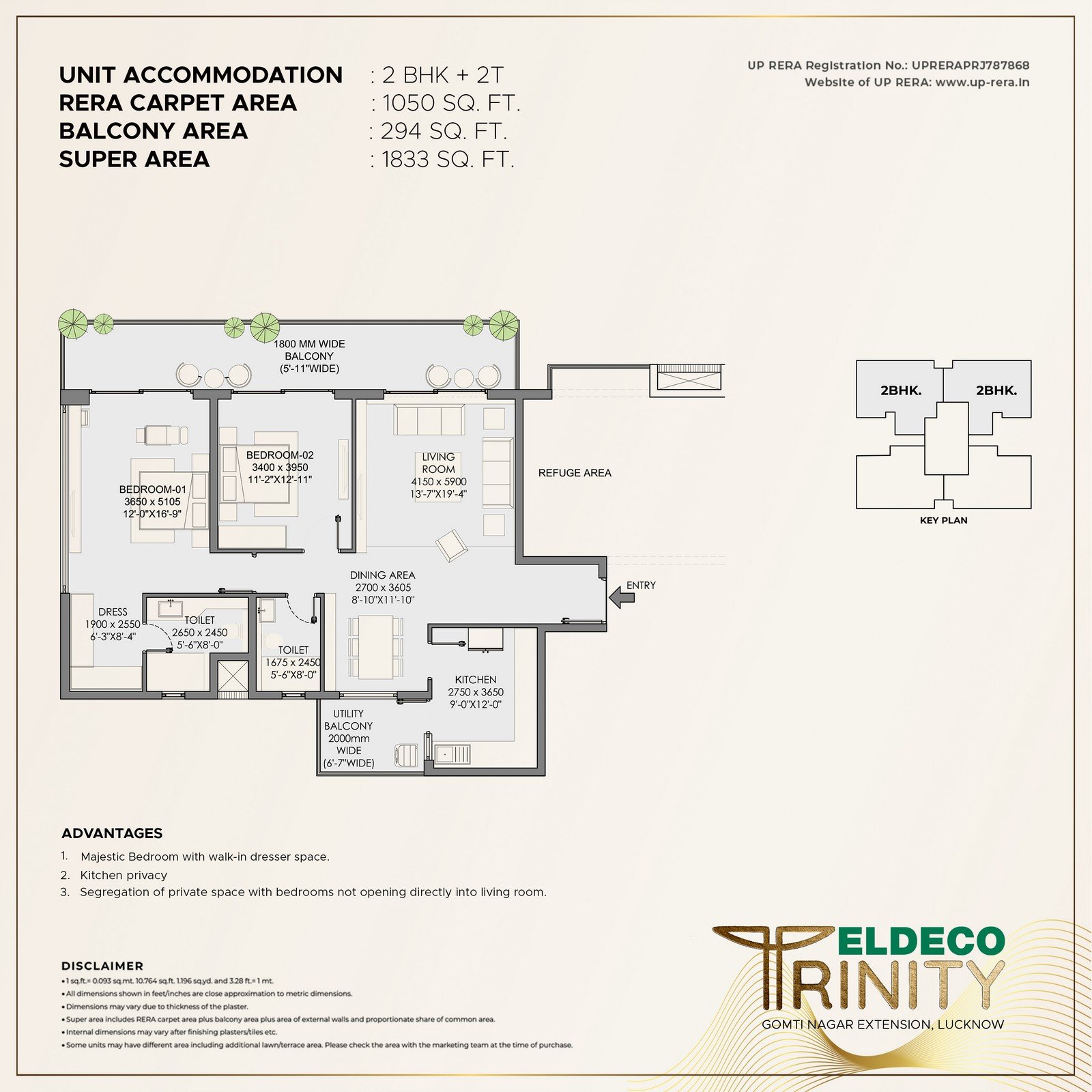 Discover the true essence of elevated living at Eldeco Trinity, strategically located next to Shaheed Path in the heart of Gomti Nagar Extension, Lucknow. With limited homes offering unrestricted, panoramic views, each apartment is designed to bring you closer to nature while keeping you connected to the city's pulse. Enjoy serene mornings and vibrant evenings with breathtaking views, all from the comfort of your luxurious, spacious apartment.